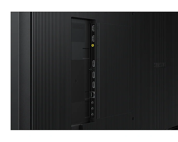 350nit, 16/7, UHD 4K Haze 2%, 19.9kg, VESA 200×200, Bezel Width (11.5mm even), Depth (28.5mm), Built-in MagicInfo S10, SSSP 10.0, IP5x Rating, Wi-Fi/BT, Tizen 7.0