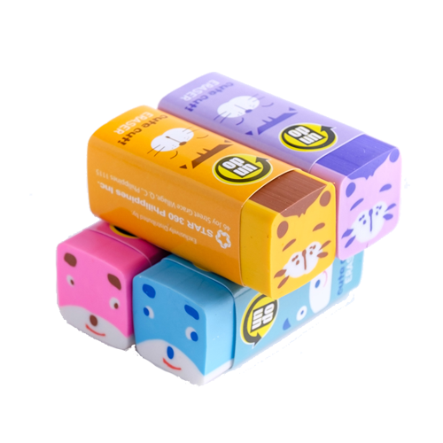 • Cute cut erasers with 4 different animal designs and colors (Yellow, Pink, Violet, Blue)